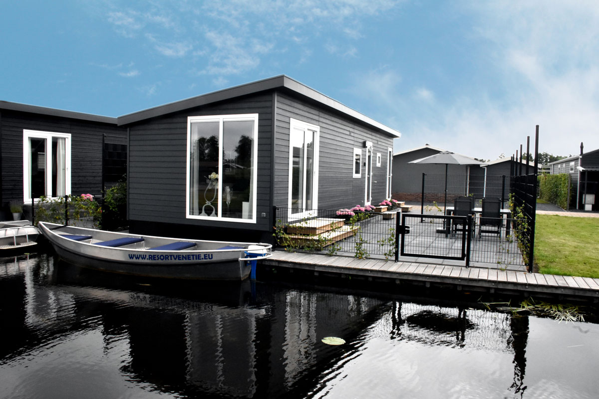 Resort Venetië, een Chaletpark in het waterstreekdorp Giethoorn, ook wel het ‘Hollands Venetië’ genoemd. Het dorp is bekend door zijn bruggetjes, waterwegen en punters. Het Chaletpark is gelegen tussen de meren ‘de Bovenwijde’ en ‘het Molengat’ en ligt op loopafstand van het prachtige toeristische centrum. Het Chaletpark is gemakkelijk bereikbaar en heeft de beschikbaarheid over voldoende parkeergelegenheden. Vanwege haar kleinschaligheid geniet u optimaal van de rust en de omgeving. Elke kavel grenst aan het water, dat u toegang geeft tot het uitgestrekte gebied met alle denkbare watersportmogelijkheden.